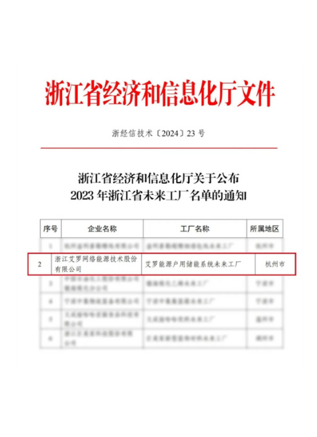 2024:“九游会能源户用储能系统”上榜浙江省未来工厂